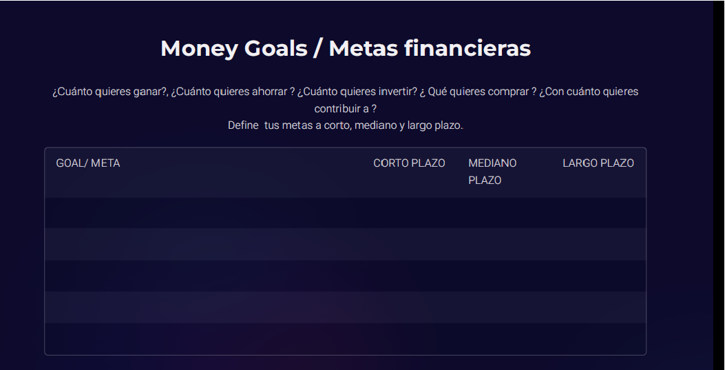 Guía práctica de metas: no todo son números. Existen metas de felicidad, financieras y de éxito, y aquí aprenderás a identificarlas y plasmarlas. Esta guía te dará la claridad y motivación que necesitas para avanzar con enfoque.